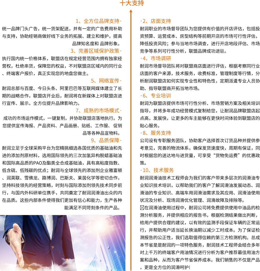 耐潤潤滑油實踐并引領(lǐng)了一場精準用油的行業(yè)變革,目前已成功成為,潤滑油行業(yè)有機鉬技術(shù)的倡導(dǎo)者與引領(lǐng)者;最大程度讓利經(jīng)銷商營銷舉措,締造了數(shù)個年銷售額過千萬的省級市場,催生了一批年收入過百萬的財富新貴。