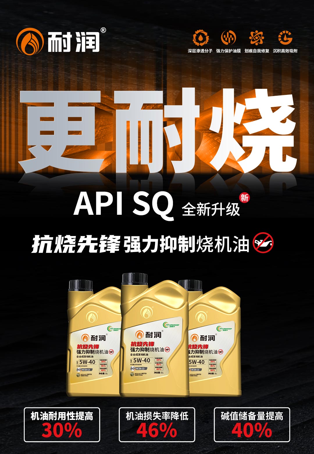 專為燒機油發動機研發—抗燒先鋒5W-40 強力抑制燒機油!